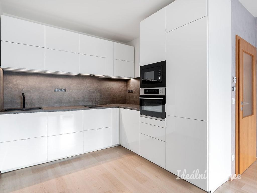 Interiér je nabízen jako nezařízený, což vám otevírá prostor pro realizaci vlastních představ o ideálním domově. Srdcem bytu je prostorný obývací pokoj s dostatkem přirozeného světla, který volně navazuje na moderní kuchyňský kout. Ten je kompletně vybaven kvalitními spotřebiči včetně lednice s mrazákem, elektrické a mikrovlnné trouby, varné desky, myčky a digestoře. Druhý, samostatný pokoj nabízí variabilní využití jako ložnice, dětský pokoj nebo klidná pracovna. Koupelna disponuje vanou, umyvadlem se skříňkou a toaletou, přičemž v bytě naleznete i praktickou technickou místnost s pračkou, která skvěle poslouží jako komora či sušárna.